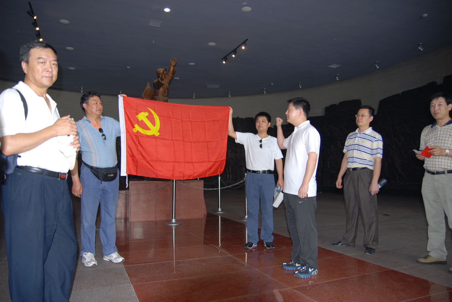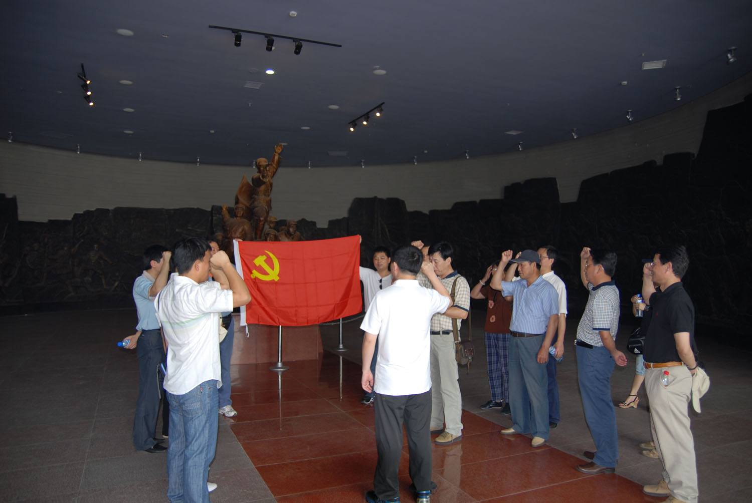最后在淮海戰(zhàn)役紀念館前,預(yù)備黨員面隊著中國共產(chǎn)黨黨旗,緊握右拳,舉起手臂進行了莊嚴的入黨宣誓,老黨員重溫入黨誓詞。不少同志拍下了許多照片來紀念這次有意義的活動,最后全體黨員同志在淮海戰(zhàn)役紀念碑前合影以留念。