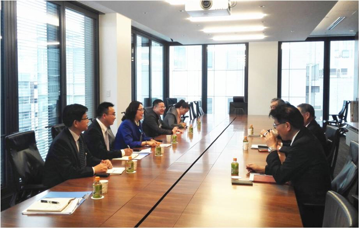 根據(jù)安糧集團(tuán)成立四十周年組委會(huì)工作安排和要求以及安糧實(shí)業(yè)對(duì)日業(yè)務(wù)拓展的需要,2016年4月13日,安糧實(shí)業(yè)石紅董事長(zhǎng)率領(lǐng)果菜訪(fǎng)日?qǐng)F(tuán)組一行六人在東京訪(fǎng)問(wèn)了日本水產(chǎn)株式會(huì)社(以下簡(jiǎn)稱(chēng)日水)本部并代表安糧集團(tuán)邀請(qǐng)細(xì)見(jiàn)社長(zhǎng)參加安糧成立四十周年慶典活動(dòng)。訪(fǎng)問(wèn)團(tuán)受到了細(xì)見(jiàn)社長(zhǎng),大木常務(wù)執(zhí)行董事和山橋董事等日水高層的親切接見(jiàn)。