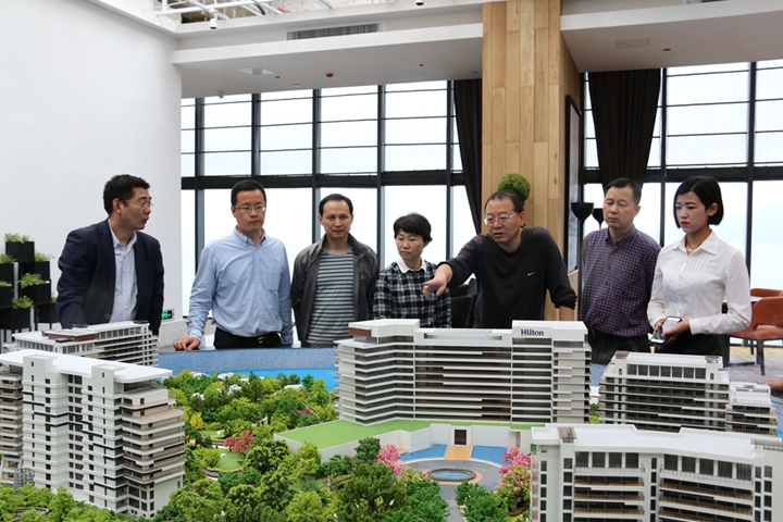范陽董事長(zhǎng)一行不顧旅途勞頓,首先來到項(xiàng)目辦公生活基地與員工親切交談,并參觀了員工宿舍;隨后又興致勃勃地前往山頂體驗(yàn)中心和銷售展示中心進(jìn)行考察。黃山秀湖山莊有限公司總經(jīng)理虞小伍、常務(wù)副總李克常向國(guó)貿(mào)集團(tuán)領(lǐng)導(dǎo)匯報(bào)了“安糧黃山太平湖國(guó)際旅游度假區(qū)項(xiàng)目”的整體規(guī)劃、建設(shè)進(jìn)展及內(nèi)部銷售情況。