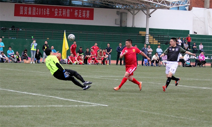 2016年5月13日,國貿(mào)集團2016年“安天利信杯”足球賽在合肥市體育運動學校拉開戰(zhàn)幕,共有來自國貿(mào)系統(tǒng)的7支代表隊參加角逐。安糧集團足球隊在首輪與華安公司代表隊的對話中取得開門紅,以6:2的比分輕取對手,在全取3分的同時,憑借凈勝球優(yōu)勢領(lǐng)跑首輪積分榜。