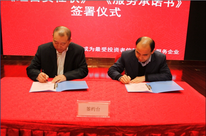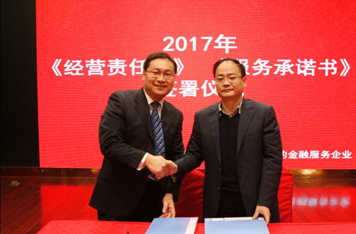 隨后,公司領導與各業(yè)務部門及金財匯頂子公司簽署了《2017年度經(jīng)營目標責任書》,與各中后臺及創(chuàng)新業(yè)務部門簽署了《2017年度服務承諾書》。