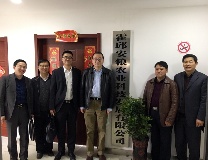 2017年3月9日,安徽國貿(mào)集團(tuán)控股有限公司黨委書記、董事長范陽,副總經(jīng)理程保銀,綜合業(yè)務(wù)部總經(jīng)理王斌等一行四人在安糧實(shí)業(yè)總經(jīng)理吳國杰、總經(jīng)理助理高龍的陪同下,赴霍邱安糧農(nóng)業(yè)科技發(fā)展有限公司(以下簡(jiǎn)稱“霍邱安糧”)進(jìn)行調(diào)研考察。