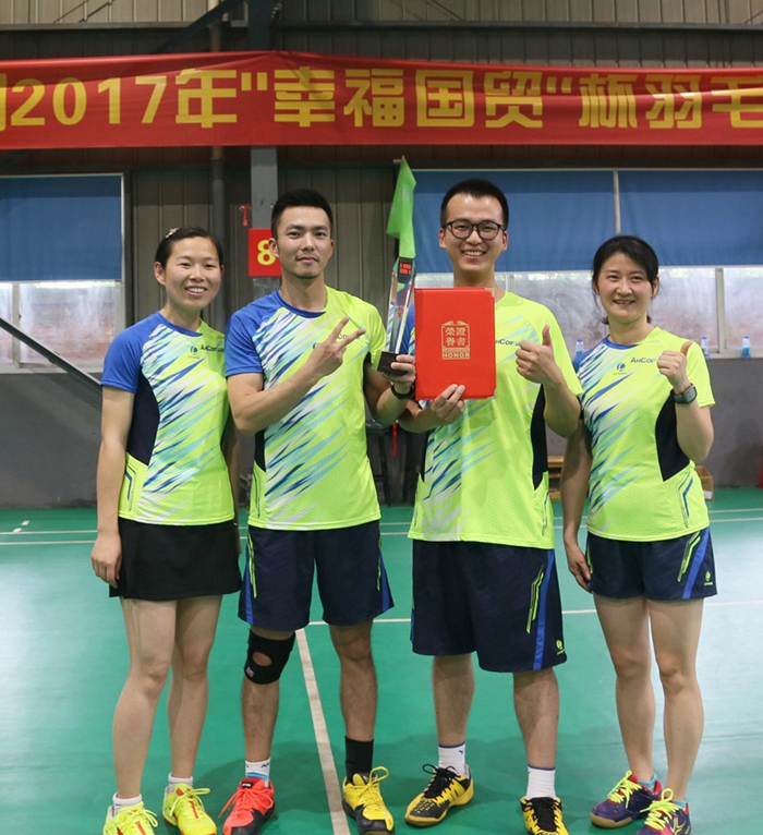 5月24日-25日,2017年安徽國貿(mào)集團(tuán)“幸福國貿(mào)”杯羽毛球比賽在合肥市夠運(yùn)動(dòng)羽毛球館舉行,國貿(mào)集團(tuán)系統(tǒng)的八支隊(duì)伍展開了為期兩天的比賽。經(jīng)過激烈比拼,安糧集團(tuán)代表隊(duì)榮獲團(tuán)體冠軍,在單打比賽中,高蓓蓓(安糧地產(chǎn))獲得女子單打冠軍、戴琍(安糧控股)獲得女子單打季軍、韓詠梅(盛安國際)獲得女子單打第四名、許朝陽(安糧興業(yè))獲得男子單打季軍、張冀海(安糧國際)獲得男子單打第六名,安糧集團(tuán)代表隊(duì)以出色的成績載譽(yù)歸來。