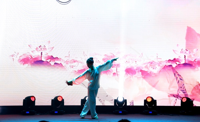 才藝展示環(huán)節(jié),選手們拿十八般武藝,各顯其能。一身素衣、文劍配身的王毓薇似仙子臨凡,在水墨丹青的畫(huà)卷中,挑云撥霧,仙姿綽約;李雨馨如青蓮?fù)癯?,纖指弄弦,撥一曲《酒狂》,古琴雅韻傳新聲;而有著溫柔端莊主持風(fēng)格的宣麗萍,意外地用充滿(mǎn)異域風(fēng)情的肚皮舞,給我們展示了多才和熱辣的一面。