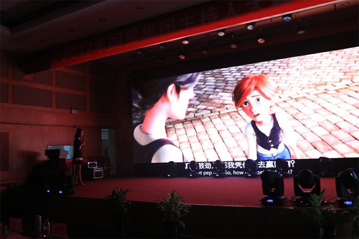 決賽分素質(zhì)表現(xiàn)、才藝展示、模擬主持等三個(gè)環(huán)節(jié)。素質(zhì)表現(xiàn)是由選手模仿或者自己設(shè)計(jì)一段節(jié)目進(jìn)行現(xiàn)場(chǎng)主持展示,考驗(yàn)的是選手作為主持人的基本功底。安糧的選手們準(zhǔn)備充分、各出心裁,有美食脫口秀、“國(guó)貿(mào)詩(shī)詞大會(huì)”,還有“國(guó)貿(mào)快訊”、國(guó)貿(mào)春晚等等。其中賈雙雙以少兒節(jié)目“國(guó)貿(mào)大風(fēng)車(chē)”主持人的身份登場(chǎng),以其俏皮可愛(ài)的風(fēng)格、親切流暢的主持贏得現(xiàn)場(chǎng)“小伙伴”們的掌聲。