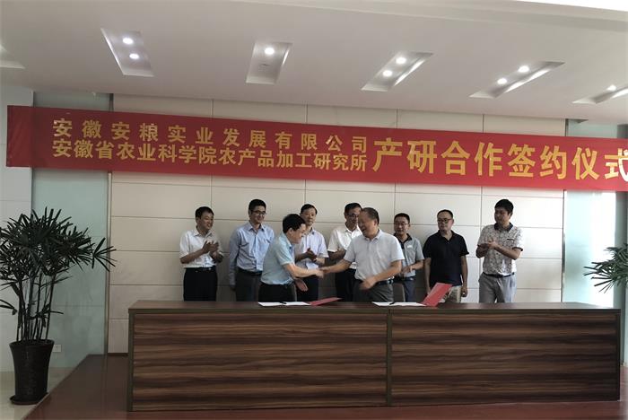 2018年9月19日,安徽省農(nóng)業(yè)科學(xué)院副院長(zhǎng)畢小彬、農(nóng)產(chǎn)品加工研究所所長(zhǎng)錢坤等一行六人在安糧集團(tuán)黨委委員、監(jiān)事會(huì)主席曹訓(xùn)立,安糧實(shí)業(yè)董事長(zhǎng)吳國(guó)杰的陪同下,來(lái)到安糧(巢湖)食品工業(yè)園進(jìn)行調(diào)研考察并簽訂了產(chǎn)研合作戰(zhàn)略協(xié)議。