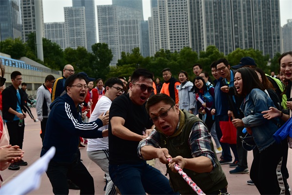 上午9點半,在簡短的開幕式后,別開生面的競賽項目陸續(xù)登場,八支隊伍各顯風采。五人六足項目首先登場,步伐一致是該項目的制勝法寶,東倒西歪的令人捧腹,中途摔倒的令人嘆息,安糧地產(chǎn)代表隊最終勇拔頭籌;摸石過河考驗手足協(xié)調(diào),安糧期貨熊青寶快速突圍,棋高一著;跳大繩的關(guān)鍵是快和穩(wěn),安糧國際一鼓作氣,幾乎零失誤,遙遙領(lǐng)先;踢毽子比賽靈巧之中顯真功夫,集團本部方嘉亮身手不凡,技壓群英;自行車競慢,平靜中見驚奇,合肥建工黃玉璟獨樹一幟;托球接力跑,一考凌波微步,二比掌上功夫,安糧實業(yè)笑到最后;呼啦圈競走難在“左右互博”,安糧小貸張媛媛最具神通;拔河項目是力量的較量,建工一隊勢如犇牛,盡展雄風;滾鐵環(huán)項目,作為童年的回憶,也漸漸成為回憶中的項目,安糧控股潘冬生副總裁帶大家領(lǐng)略了老前輩的少年風采;50米折返跑接力作為本屆比賽的壓軸大戲,最為矚目,集團聯(lián)隊一騎絕塵!十項比賽結(jié)束,“有趣”的一天也臨近尾聲,8支隊伍各領(lǐng)風騷,獎牌背后,團結(jié)奮進是制勝的終極秘訣。