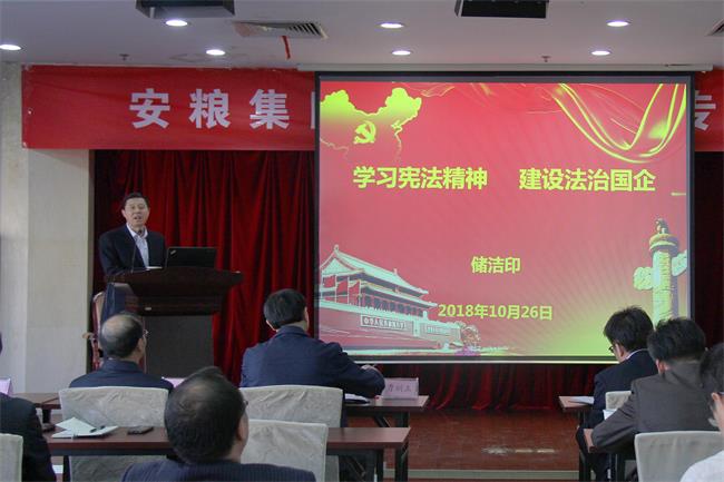 依據(jù)省國資委印發(fā)的《關于對省屬企業(yè)“七五”普法中期暨憲法學習宣傳實施情況開展督查的通知》的要求,10月26日下午,安糧集團舉辦憲法專題培訓,安糧控股副總裁兼總法律顧問儲潔印授課。集團系統(tǒng)各單位經(jīng)營管理人員180余人參加了培訓。