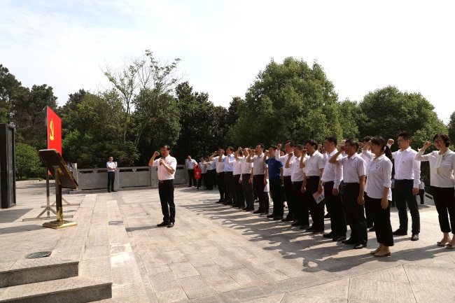 堅(jiān)守初心,勇?lián)姑?/span>6月28日上午,安糧集團(tuán)黨委組織集團(tuán)黨委班子及系統(tǒng)各基層黨支部支委以上干部共30余人赴肥東縣茶壺山革命烈士陵園、瑤崗渡江戰(zhàn)役總前委舊址,舉行緬懷革命先烈、重溫入黨誓詞、接受革命傳統(tǒng)教育活動(dòng),并現(xiàn)場(chǎng)召開“不忘初心、牢記使命”主題教育動(dòng)員會(huì),以革命傳統(tǒng)教育開啟安糧集團(tuán)主題教育第一課。