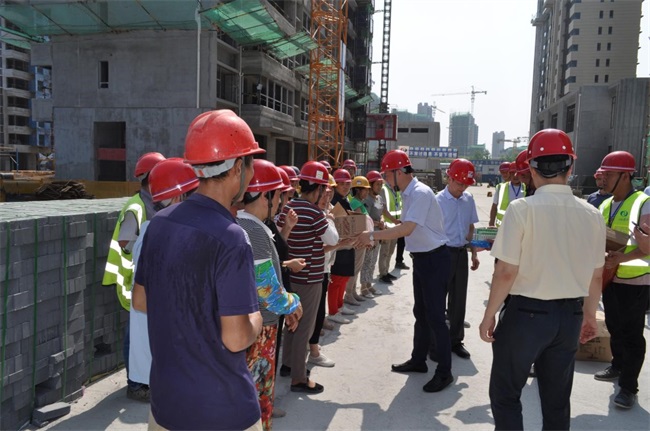 時(shí)至大暑,日盛三伏。23日上午9點(diǎn),曹訓(xùn)立書(shū)記一行來(lái)到由總承包分公司承建的濱湖碧桂公館項(xiàng)目部,慰問(wèn)鏖戰(zhàn)酷夏的一線職工,為他們送去防暑降溫慰問(wèn)品。曹訓(xùn)立書(shū)記與總承包分公司及項(xiàng)目主要負(fù)責(zé)人進(jìn)行了細(xì)致交流,叮囑公司和項(xiàng)目部要做好防暑降溫工作,合理安排施工時(shí)段,盡量避開(kāi)高溫天氣,注意勞逸結(jié)合,給一線員工創(chuàng)造良好的工作環(huán)境,確保員工身體健康和施工安全,保障各項(xiàng)目工作有條不紊地開(kāi)展。