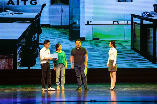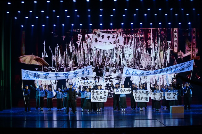 情景劇《使命的接力》分為四個篇章,前三個篇章以五四運動、抗日戰(zhàn)爭、新中國成立以及改革開放等重要時間節(jié)點為背景,節(jié)選具有鮮明時代烙印的畫面,講述了一百年來中國人民的民族氣節(jié)和不屈不饒的奮斗歷程;最后一個篇章則回歸到當(dāng)下外貿(mào)工作中的一個真實場景,描述了新時代國貿(mào)人接過前輩的接力棒,不忘初心、牢記使命,在一次次的磨礪中不斷成長,立志為中華民族偉大復(fù)興貢獻力量的動人故事。