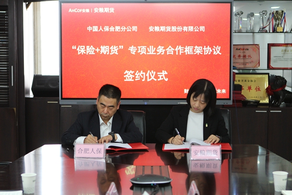 安糧期貨與人保財(cái)險合肥分公司簽訂“保險+期貨”專項(xiàng)業(yè)務(wù)合作框架協(xié)議