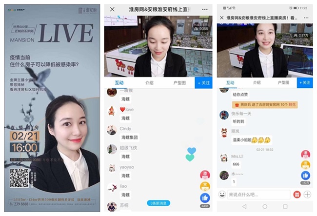 面對售樓部無法開放的不利局面,安糧地產(chǎn)想方設法創(chuàng)造與客戶交流的機會,創(chuàng)新搭建線上看房小程序“安糧幸福家 快樂新生活”移動售樓部,為購房者提供便捷有效的溝通平臺。截止目前,安糧地產(chǎn)線上售樓部共計收到有效客戶500余組,并且已有部分成功轉為成交客戶。此外,為進一步傳遞品牌價值,打造項目影響力,淮安府項目經(jīng)過認真準備推出網(wǎng)絡直播,實現(xiàn)營銷與購房者“面對面”互動,通過全方位介紹項目信息和線上答疑解惑,吸引目標客戶。首次直播互動在線人數(shù)超2萬,建立超百人意向客戶微信群,反饋效果明顯。
