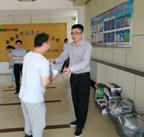 8月12日上午,安糧集團副總裁、安糧實業(yè)董事長吳國杰,赴安可福食品有限公司開展調研工作并代表安糧集團工會向一線人員工發(fā)放了礦泉水、仁丹、毛巾等防暑降溫用品,慰問奮戰(zhàn)在高溫生產一線的員工,叮囑大家在疫情期間尤其要注意做好防暑降溫,把身體健康放在第一位。