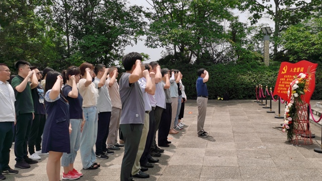 大家隨后來(lái)到紀(jì)念塔緬懷先烈、敬獻(xiàn)花籃。同志們面向黨旗,重溫入黨誓詞。嘹亮的誓言久久回響,深深地埋在每一位黨員的心中。