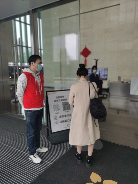 面對突如其來的新一輪嚴(yán)峻疫情,早高峰時期員工進(jìn)入大樓前的雙碼核驗和測量體溫工作,導(dǎo)致在入口處排起長隊,影響同事們按時到崗,這給安糧中心物業(yè)管理帶來了難題。安糧團(tuán)委在集團(tuán)黨委的指示下聞令而動、迅速集結(jié),來自集團(tuán)團(tuán)委各下屬支部的團(tuán)員青年志愿者們,在做好個人防護(hù)的基礎(chǔ)上,穿起“紅馬甲”,主動申請投身到疫情防控工作中,大大加快了早高峰通行效率。