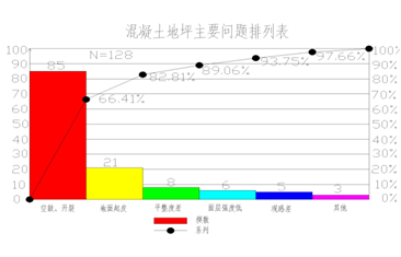 2021年6月開(kāi)始室內(nèi)地坪的施工,在最初對(duì)地坪施工質(zhì)量的檢查中發(fā)現(xiàn),其一次性驗(yàn)收合格率僅為85.7%,還有較大的提升空間。項(xiàng)目團(tuán)隊(duì)經(jīng)過(guò)研討后,確定本次的QC活動(dòng)課題為《提高室內(nèi)混凝土地坪施工一次性合格率》。隨后QC小組迅速展開(kāi)工作,對(duì)項(xiàng)目已施工的 8#、10#、12#樓地坪質(zhì)量進(jìn)行檢查,并對(duì)檢查的900個(gè)檢查點(diǎn)的數(shù)據(jù)進(jìn)行分析,發(fā)現(xiàn)空鼓、開(kāi)裂是混凝土地坪的主要質(zhì)量缺陷。