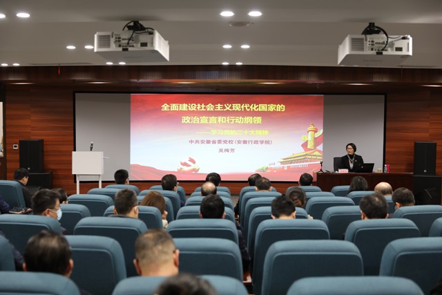 吳教授以《全面建設社會主義現(xiàn)代化國家的政治宣言和行動綱領——學習黨的二十大精神》為主題展開宣講,她介紹了黨的二十大召開的特殊背景和重大意義,從黨的二十大的主題和主要成果、黨的二十大報告的基本內容和核心要義、學習宣傳貫徹黨的二十大精神三個方面,深入淺出、融會貫通地分析了本次會議提出的各項突破、首次創(chuàng)新以及細微變化背后的深刻含義,為抓好黨的二十大精神的大學習、大宣傳、大貫徹工作指明了方向、提供了思路。