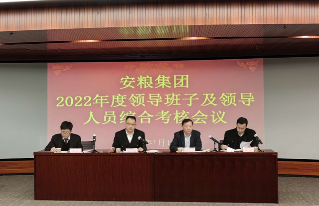 根據(jù)安徽國貿(mào)黨委統(tǒng)一部署,2023年1月11日,安徽國貿(mào)考核組到安糧集團(tuán)開展2022年度領(lǐng)導(dǎo)班子及領(lǐng)導(dǎo)人員綜合考核工作。安徽國貿(mào)黨委副書記、總經(jīng)理、考核組組長劉為出席會(huì)議并講話。安糧集團(tuán)黨委書記、董事長曹訓(xùn)立,黨委副書記、總裁方宗友等領(lǐng)導(dǎo)班子成員及中層正職管理人員、二級單位主要負(fù)責(zé)人、職工代表等參加考核會(huì)議,安糧集團(tuán)黨委副書記孫毅主持會(huì)議。