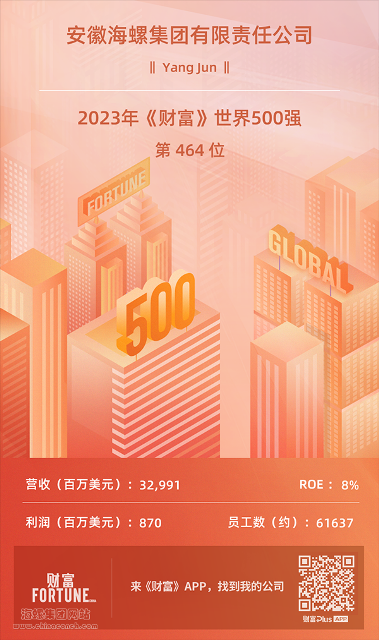 財(cái)富Plus APP于北京時(shí)間2023年8月2日與全球同步發(fā)布了最新的《財(cái)富》世界500強(qiáng)排行榜。海螺集團(tuán)以32,991百萬美元的營(yíng)收名列2023年《財(cái)富》世界500強(qiáng)第464位。