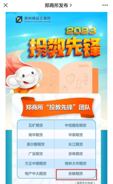 喜訊丨安糧期貨榮獲鄭商所2023年 “投教先鋒”稱號