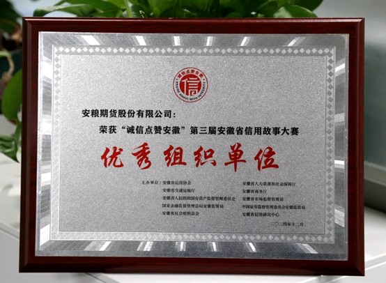 安糧期貨在“誠(chéng)信點(diǎn)贊安徽”第三屆 徽省信用故事大賽中榮獲佳績(jī)