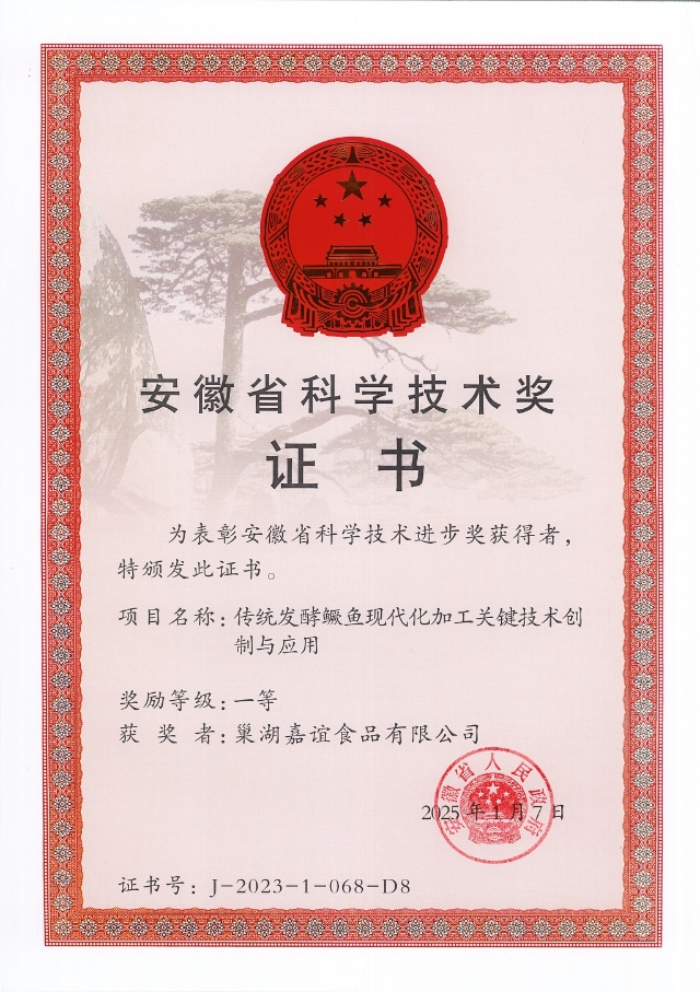 近日,安徽省科學技術獎評選結果正式公布,安糧旗下巢湖嘉誼食品有限公司憑借“傳統(tǒng)發(fā)酵鱖魚現代化加工關鍵技術創(chuàng)制與應用”項目,榮獲安徽省科學技術獎一等獎。這一重大科技成果的取得,充分彰顯了安糧堅持科技創(chuàng)新驅動發(fā)展、深化產學研合作的戰(zhàn)略成效。