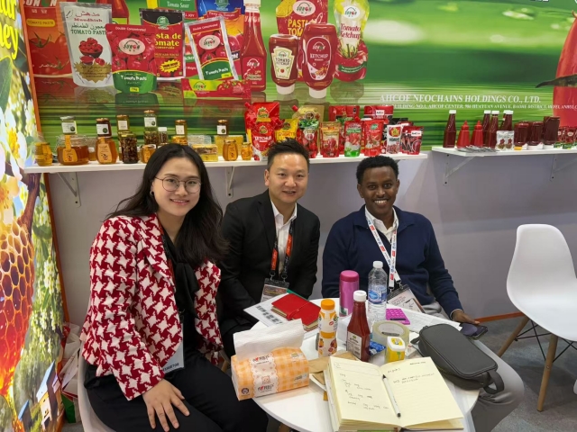 步入2026年,安糧新鏈的海外市場布局持續(xù)向縱深推進,將目光投向中東及北非市場,精準切入食品消費賽道。在1月的迪拜海灣食品展上,安糧新鏈高效對接來自阿聯(lián)酋、沙特、埃及等數(shù)十個國家和地區(qū)的專業(yè)客商,成功挖掘大批重點意向客戶,番茄醬產(chǎn)品率先實現(xiàn)訂單落地,更與也門客戶達成定制化合作共識,敲定立袋、平袋番茄醬試單合作,順利打開中東及北非食品市場的入口,為快消品類的全球化布局奠定基礎。